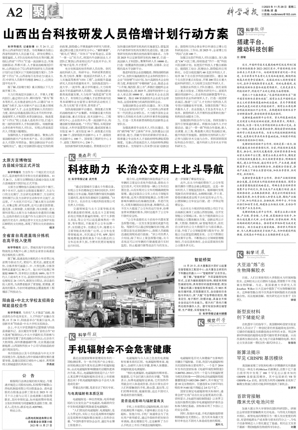 《科学导报》2023年11月28日版面速览-ag官网